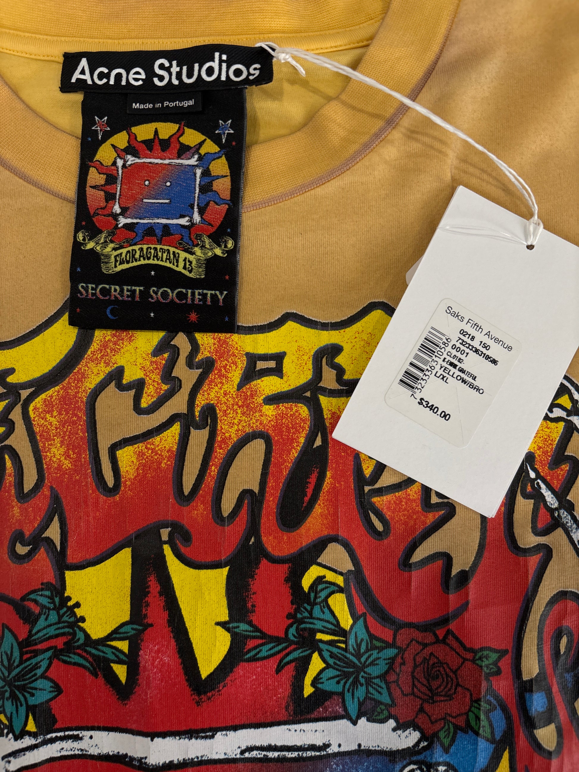Acne Studios Enrik Grateful Sun Oversized Face T-Shirt in Yellow.